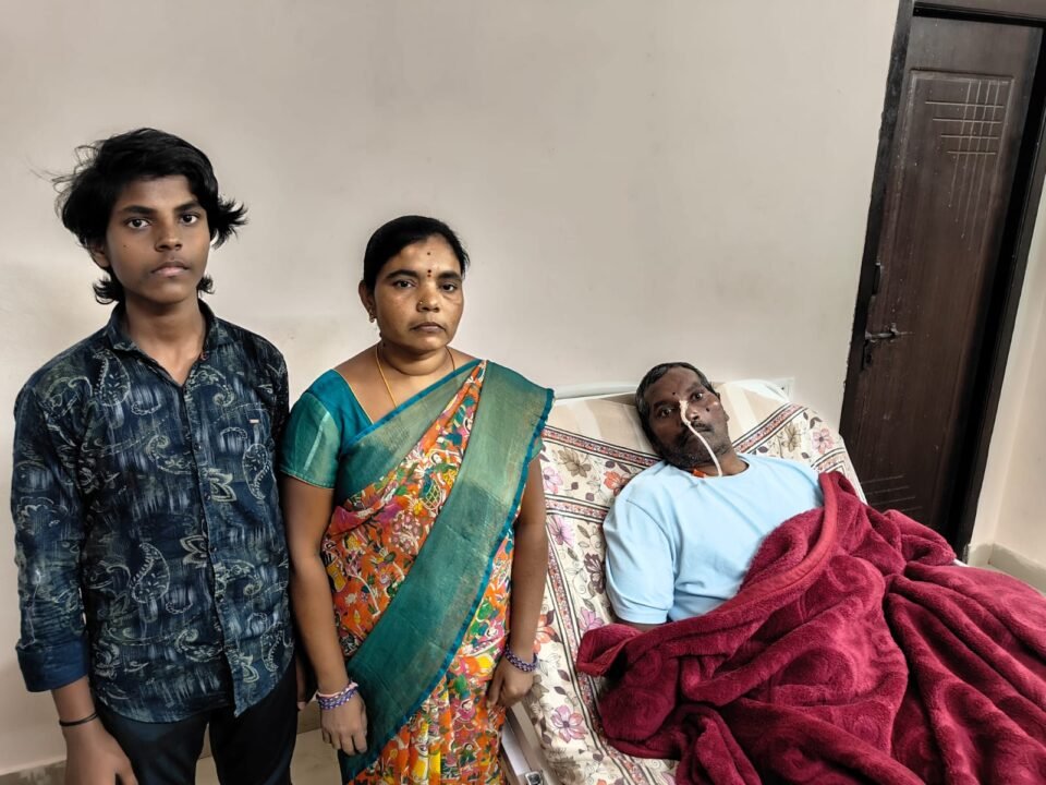 చేవెళ్ల జనవరి 19(ప్రజాక్షేత్రం):రంగారెడ్డి జిల్లా చేవెళ్ల పట్టణంలోని కమ్మెట గ్రామానికి చెందినటువంటి గొల్లగూడ యాదయ్య తండ్రి హనుమయ్య వయసు 50 సంవత్సరాలు గత కొంతకాలంగా అనారోగ్యంతో బాధపడుతున్నారు. వైద్యం కోసం తన యావదాస్తిని తాకట్టు పెట్టి చూయించుకున్న పూర్తిగా కోలుకోలేకపోవడంతో దాతల ఆర్థిక సహాయం కోసం ఎదురుచూస్తున్నారు. పూర్తి వివరాల్లోకి వెళితే కమ్మెట గ్రామానికి చెందినటువంటి గొల్లగూడ యాదయ్య 2023 మార్చ్ 19వ తేదీన హిమాయత్ నగర్ నుండి కమ్మెట కు బైక్ పై వస్తుండగా యాక్సిడెంట్ జరిగింది. యాక్సిడెంట్ జరిగిన వెంటనే స్థానికులు అతడిని హాస్పిటల్ కి తరలించగా కోమాలోకి వెళ్లినట్టు, బ్రెయిన్ లో బ్లడ్ క్లాట్ అయినట్టు డాక్టర్లు తెలిపారు. జూబ్లీహిల్స్ లోని అపోలో హాస్పిటల్లో బ్రెయిన్ సర్జరీ చేయడం జరిగింది. కుడి చేయి కుడికాలు పక్షవాతానికి గురి కావడం తో తీవ్ర మనోవేదన కు గురయ్యారు.హాస్పిటల్ ఖర్చులకై వైద్యం కొరకు తనకు ఉన్న అరఎరం పొలం పూర్తిగా అమ్మి ట్రీట్మెంట్ తీసుకున్నారు. దాదాపు నాలుగు నెలలపాటు హాస్పిటల్లో గడిపి ఇంటికి చేరుకొని ఫిజియోథెరపీ చేయించుకుంటున్నారు. తాను మాట్లాడలేరు,తన పని తాను చేసుకోలేడు, ఇలా గత రెండు సంవత్సరాలుగా నరకయాతన అనుభవిస్తున్నారు. కుటుంబం గడవడమే కష్టంగా మారి ఏదైనా పని చేసుకుందామని తన భార్య అనుకున్న తన భార్య కు నాలుగు ఆపరేషన్స్ కావడం వల్ల తనకు ఆరోగ్యం సహకరించడం లేదు ఒకవైపు భర్త మంచాన పడటం తో కుటుంబ భారం ఇబ్బంది గా మారి తన బిడ్డల చదువు ఆగమై అన్ని తానే చూసుకుంటుంది..ఎలాగైనా దాతలు ఆర్థిక సహాయం చేసి తన భర్త ప్రాణాలు కాపడాలని కోరుతున్నారు.