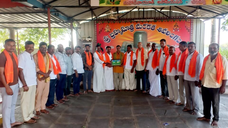 శంకర్‌ పల్లి జనవరి 20(ప్రజాక్షేత్రం):మండల పరిధిలోని చందిప్ప గ్రామ శివారులో గల 11 వ శతాబ్దానికి చెందిన శ్రీ బ్రహ్మసూత్ర మరకత శివాలయంలో సోమవారం మండల పార్టీ మాజీ అధ్యక్షుడు, మాజీ ఎంపీటీసీ బసగళ్ల రాములు గౌడ్ స్వామి వారికి ప్రత్యేక పూజలు, అభిషేకాలు చేసి, స్వామి వారిని దర్శించుకున్నారు. ఆలయ అర్చకులు ప్రమోద్ కుమార్ తీర్థ ప్రసాదాలు అందజేశారు. కాలభైరవుడి దగ్గర దీపాలు వెలిగించారు. అనంతరం భక్తులకు రాములు గౌడ్, అన్నదానం ఏర్పాటు చేశారు. ఆలయ కమిటీ సభ్యులు రాములు గౌడ్ ను శేష వస్త్రంతో సత్కరించి, స్వామి వారి చిత్రపటాన్ని బహుకరించారు. కార్యక్రమంలో మాజీ ఎంపీపీ గోవర్ధన్ రెడ్డి, మాజీ ఏఎంసీ చైర్మన్ పరమేశ్వర్ రెడ్డి, జిల్లా బిజెపి కౌన్సిల్ సభ్యుడు వాసుదేవ్ కన్నా, మండల పార్టీ అధ్యక్షుడు లీలావతి బయానంద్, మున్సిపల్ అధ్యక్షుడు దయాకర్ రెడ్డి, యూత్ లీడర్ ప్రవీణ్ కుమార్, ఆలయ గౌరవ అధ్యక్షుడు సదానందం గౌడ్, అన్నదాన కమిటీ చైర్మన్ దర్శన్ గౌడ్ పాల్గొన్నారు.