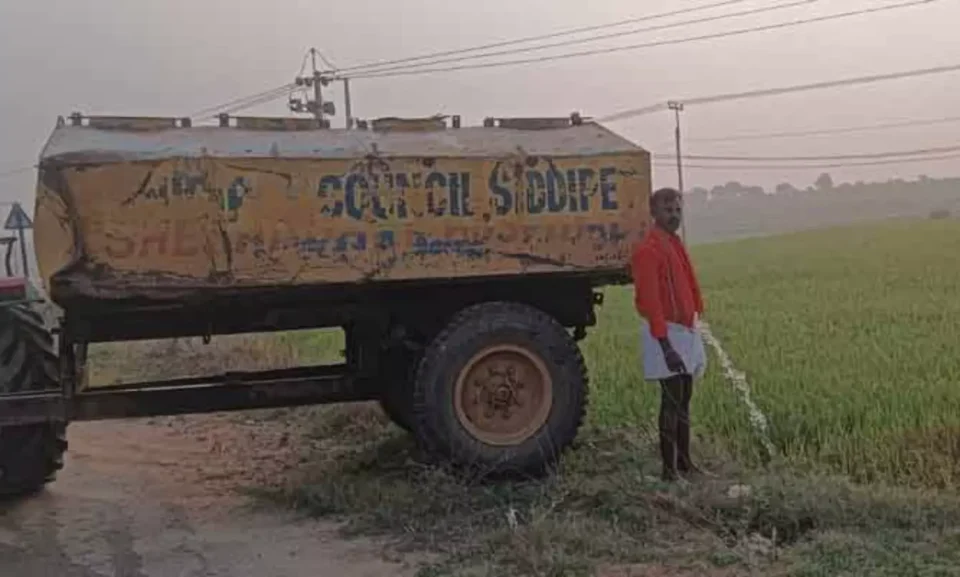 ట్యాంకర్ తో పొలానికి నీరు.. పంటను కాపాడుకోవడానికి రైతుల పాట్లు..