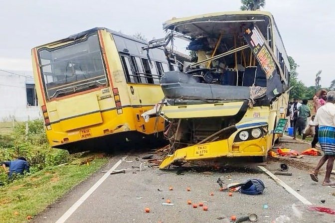 తమిళనాడు నవంబర్ 30(ప్రజాక్షేత్రం):తమిళనాడులో ఆదివారం సాయంత్రం ఘోర రోడ్డు ప్రమాదం జరిగింది. శివగంగ జిల్లాలోని తిరుపత్తూర్ సమీపంలో రెండు ఆర్టీసీ బస్సులు ఢీకొన్నాయి. ఈ దుర్ఘటనలో ఒక చిన్నారితో సహా 11 మంది అక్కడికక్కడే ప్రాణాలు కోల్పోయారు. 20 మంది తీవ్రంగా గాయపడ్డారు. ప్రస్తుతం సహాయక చర్యలు కొనసాగుతున్నాయని అధికారులు తెలిపారు. వివరాల్లోకి వెళితే, ఒక బస్సు తిరుప్పూర్ నుంచి కారైకుడి వస్తుండగా… మరో బస్సు కారైకుడి నుంచి దిండిగల్కు ప్రయాణిస్తోంది. తిరుపత్తూర్ వద్దకు రాగానే ఈ రెండు బస్సులు ఢీకొన్నాయి. ప్రమాదం జరిగిన వెంటనే స్థానికులు సహాయక చర్యలు చేపట్టి, క్షతగాత్రులను శివగంగ ప్రభుత్వ ఆసుపత్రికి తరలించారు. గాయపడిన వారిలో కొందరి పరిస్థితి విషమంగా ఉండటంతో మృతుల సంఖ్య పెరిగే అవకాశం ఉందని అధికారులు ఆందోళన వ్యక్తం చేస్తున్నారు. తమిళనాడులో వారం రోజుల వ్యవధిలోనే ఇలాంటి ఘోర ప్రమాదం జరగడం ఇది రెండోసారి కావడం గమనార్హం. నవంబర్ 24న తెన్కాశి జిల్లాలో రెండు ప్రైవేట్ బస్సులు ఢీకొన్న ఘటనలో ఐదుగురు మహిళలు సహా ఆరుగురు మరణించగా, 56 మంది గాయపడ్డారు. ఆ ప్రమాదానికి డ్రైవర్ అతివేగమే కారణమని పోలీసులు నిర్ధారించారు. ఆ ఘటనలో మృతుల కుటుంబాలకు సీఎం ఎంకే స్టాలిన్ రూ. 3 లక్షల చొప్పున పరిహారం ప్రకటించారు.